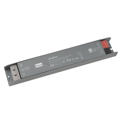 LED power supply LM-300V24: LED transformer constant voltage, input 220 – 240 V (AC), output 24 V (DC), non-dimmable, flicker-free, built-in installation.