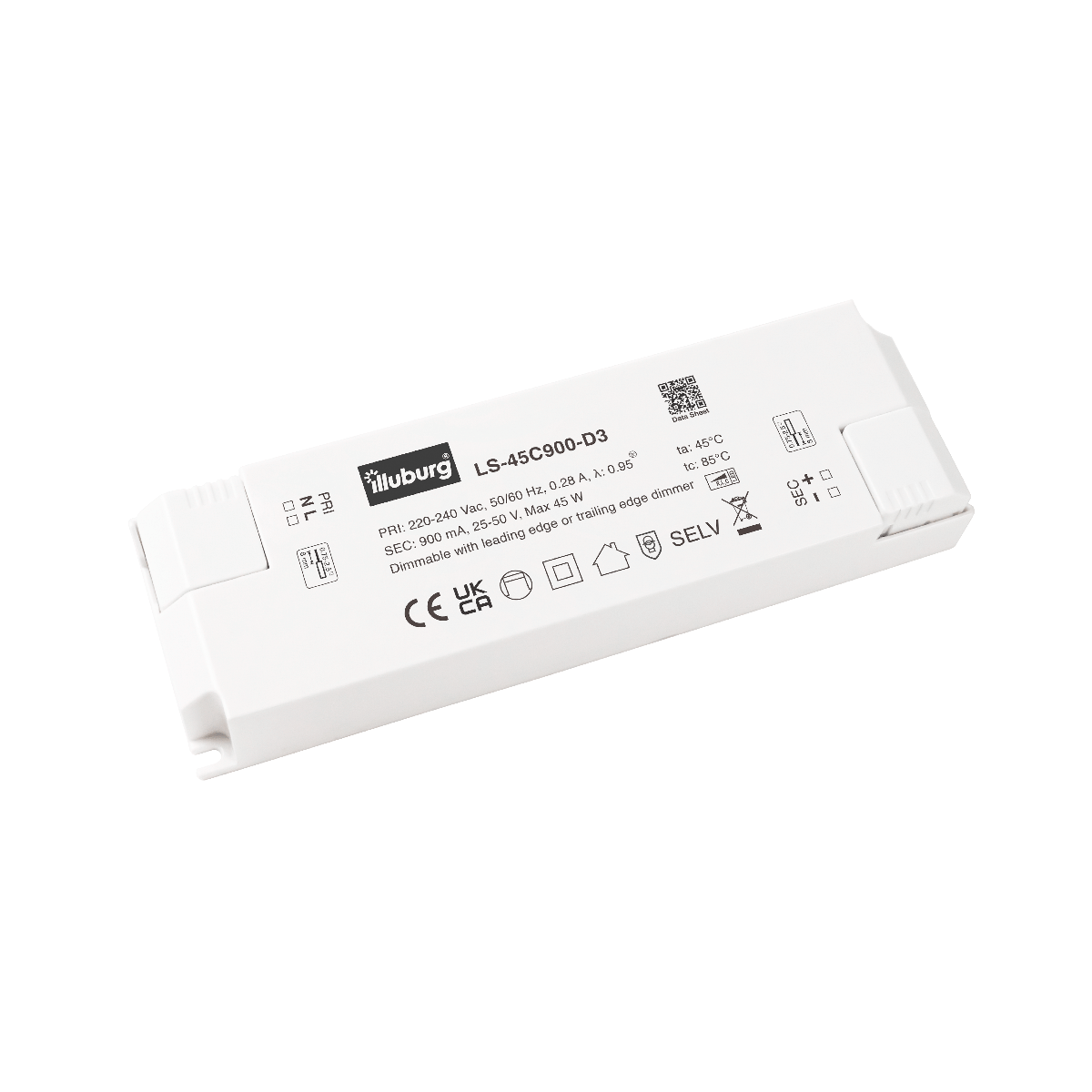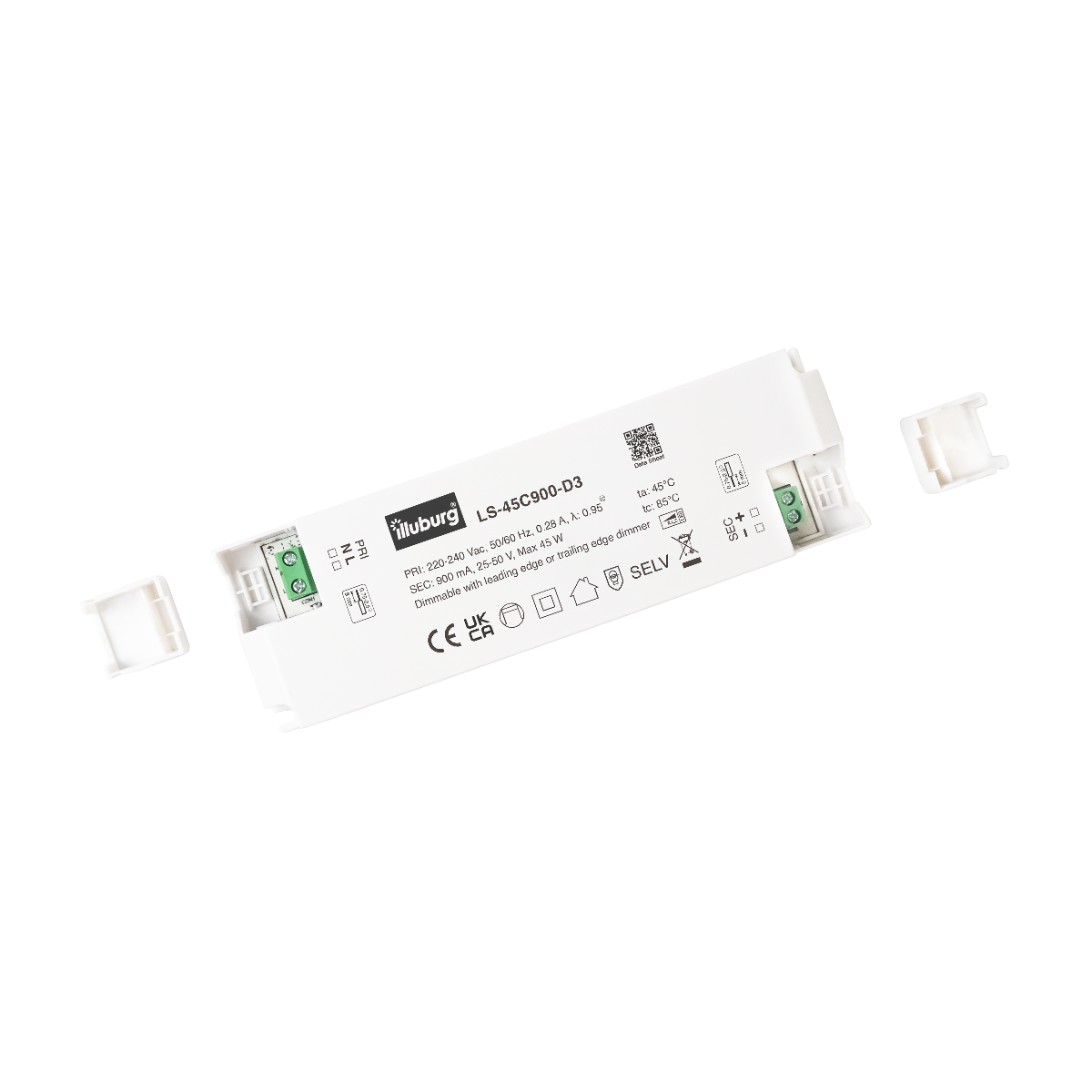 900mA, 45W, Triac dimmable, IP20, 166x52x24mm