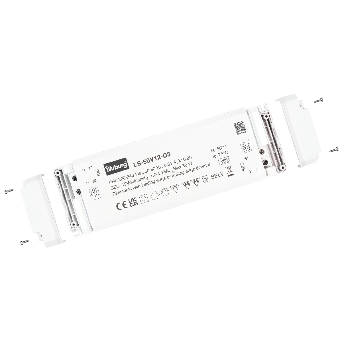 illuburg led trafo netzteil driver treiber transformator 12v 12 volt dc konstantspannung gleichspannung dimmbar triac 20w 30w 40w 50w 20 30 40 50 watt möbel decke wand einbau led streifen lampe