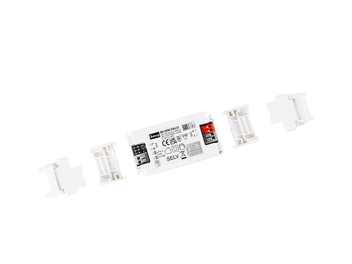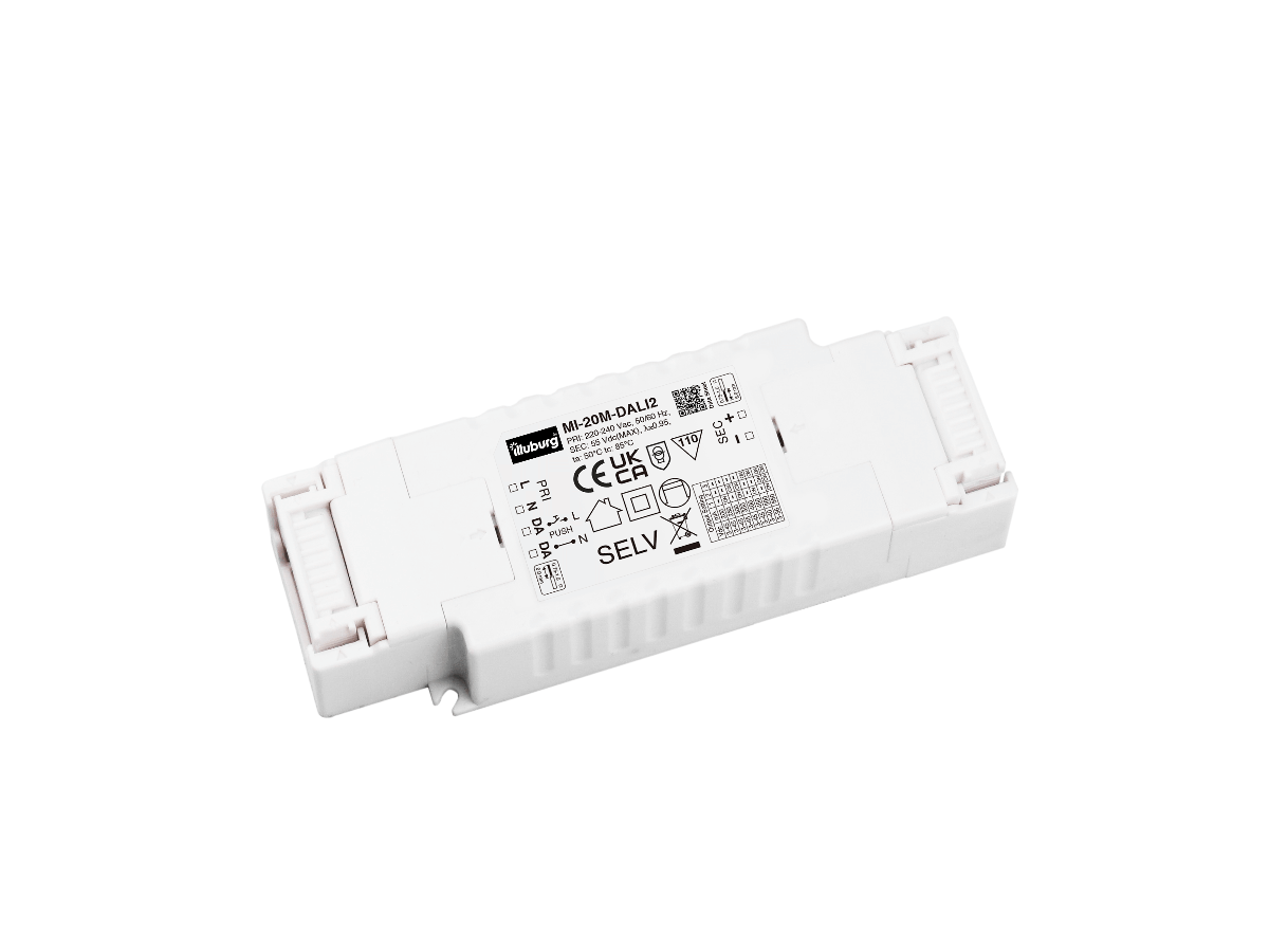 LED-Netzteil MI-20M-DALI2: LED Trafo mit einstellbarem Ausgang, Eingang 220 – 240 V (AC), DALI2, dimmbar, flackerfrei, unabhängige Installation.