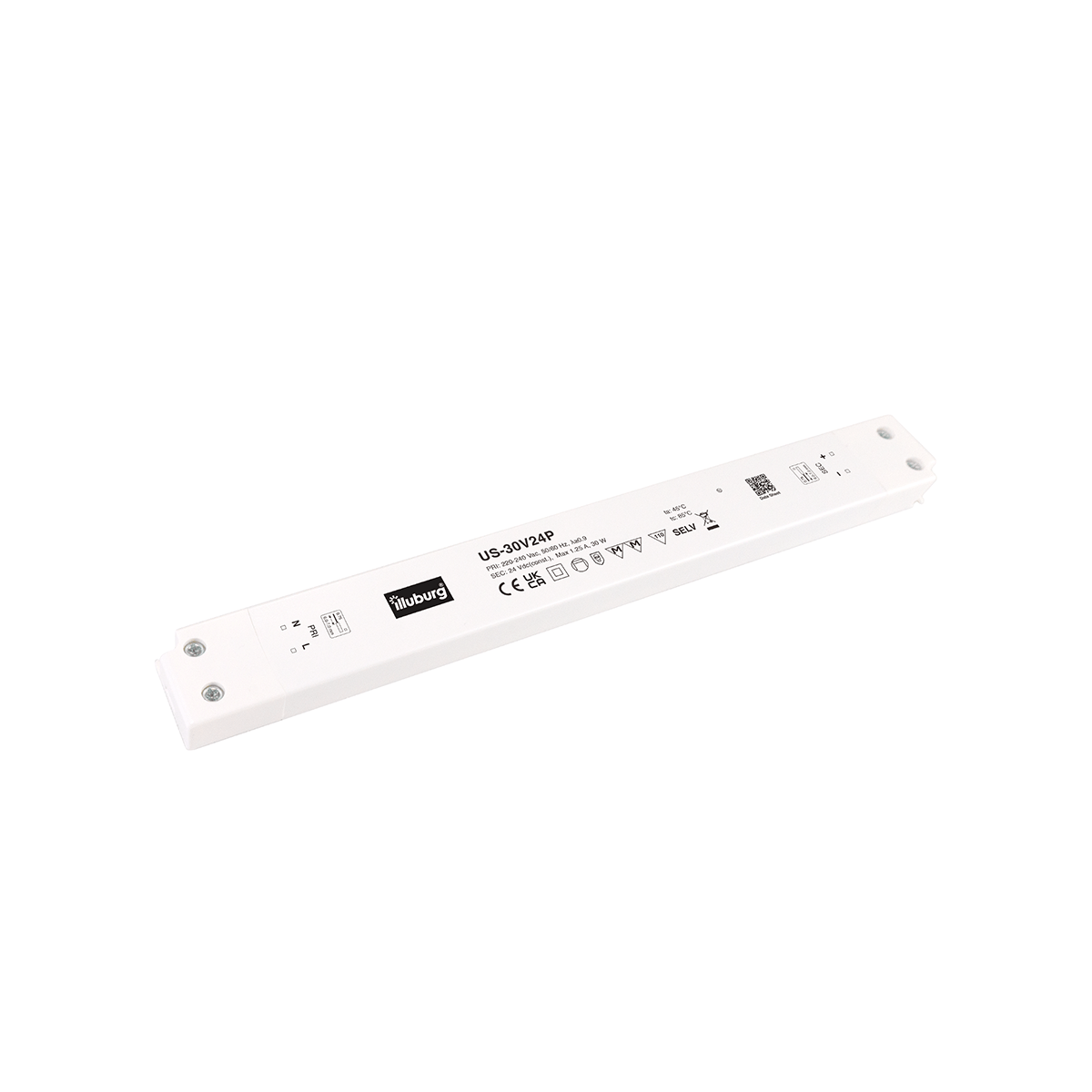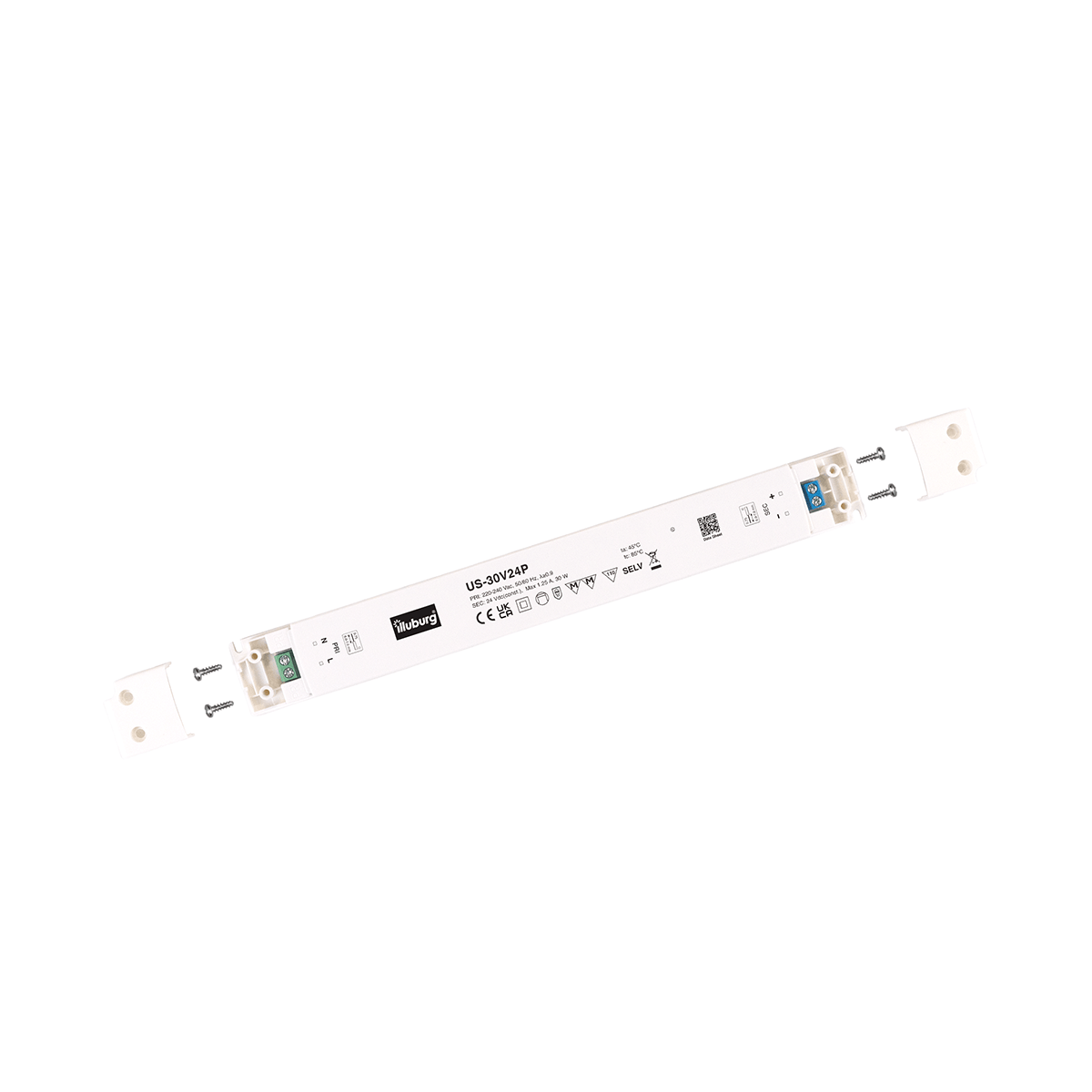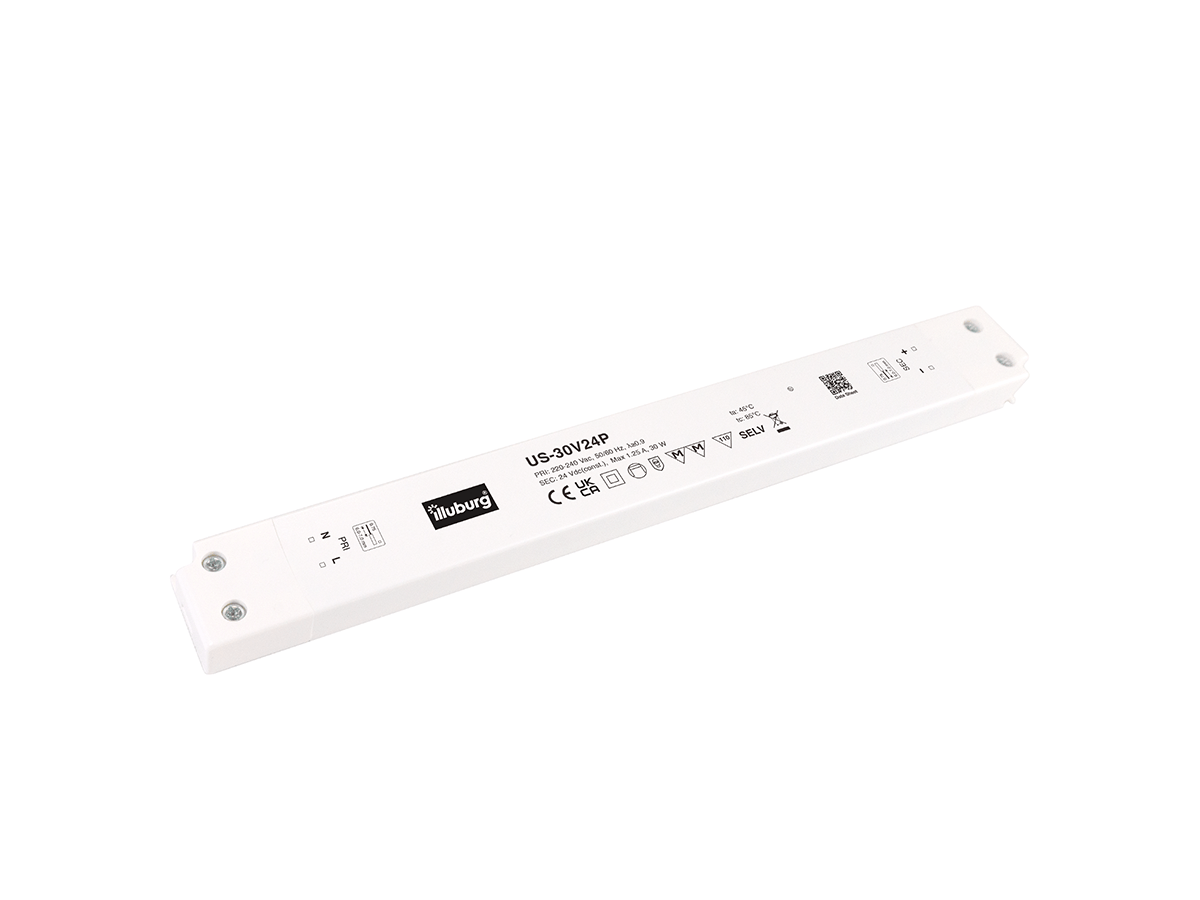 LED-Netzteil US-30V24P: LED Trafo Konstantpannung, Eingang 220 – 240 V (AC), Ausgang 24 V (DC), nicht dimmbar, flackerfrei, unabhängige Installation.