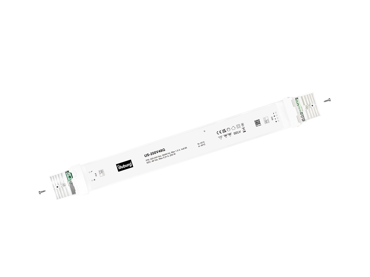LED-Netzteil US-250V48G: LED Trafo Konstantpannung, Eingang 220 – 240 V (AC), Ausgang 48 V (DC), nicht dimmbar, unabhängige Installation.