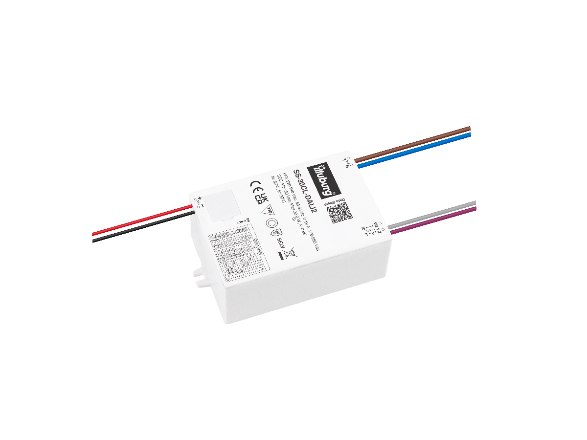 LED-TREIBER SS-30CL-DALI2: Eingang 220 – 240 V (AC), Ausgang 500 – 1050 mA Kosntantstrom, dimmbar, Einbau-Installation.